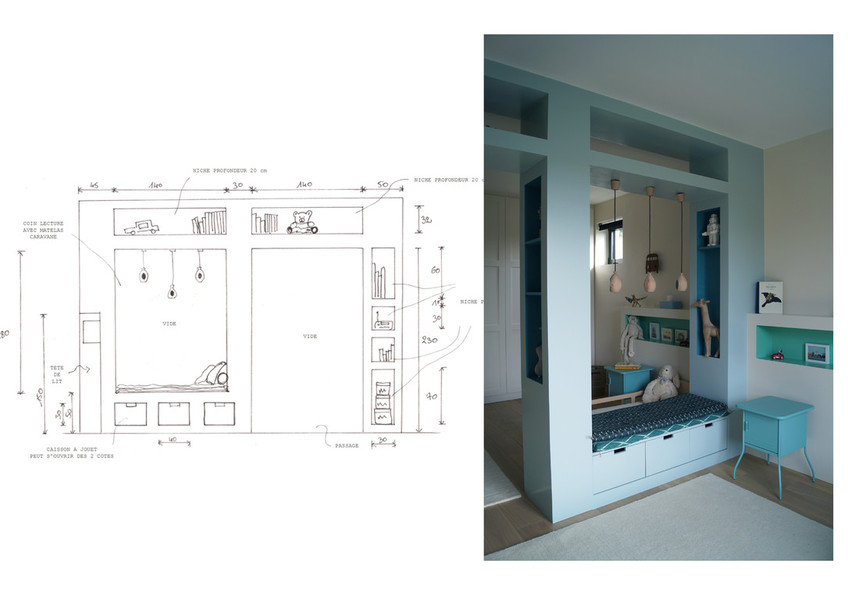 Elle réalise des croquis, élévations, perspectives afin de mettre en situation sa sélection de mobilier et de vous aider à mieux visualiser votre futur intérieur.